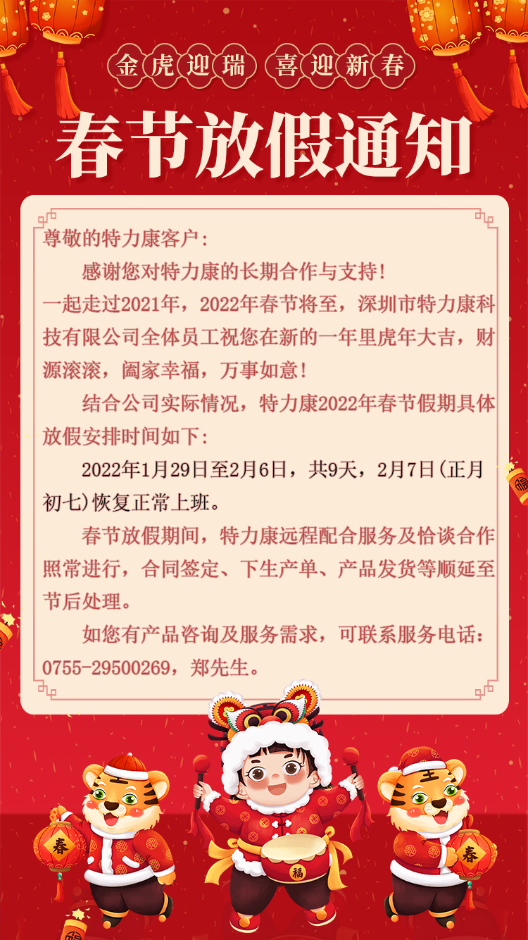 2022年春節(jié)即將來(lái)臨,根據(jù)國(guó)家相關(guān)規(guī)定,結(jié)合本公司實(shí)際情況,經(jīng)公司領(lǐng)導(dǎo)決定2022年春節(jié)假日具體放假安排時(shí)間如下: