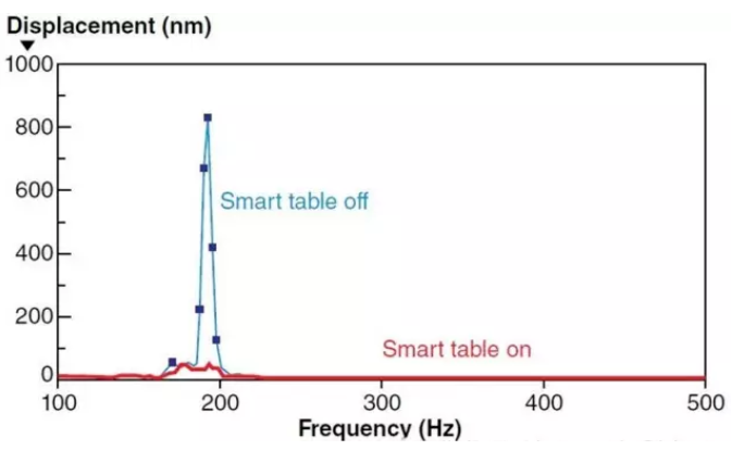 系統(tǒng)穩(wěn)定性不只受高頻振動的影響,低頻振動的干擾同樣需要重視,尤其在系統(tǒng)組件的頻率附近。氣浮隔振腿的主要作用除了支撐,還體現(xiàn)在能有效削減傳遞到桌面的低頻地表振動。