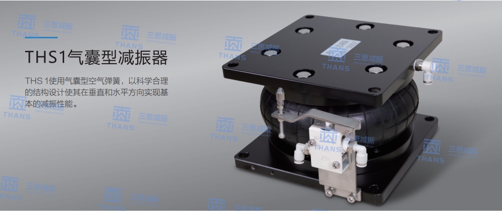 THS1氣囊型減振器使用氣囊型空氣彈簧,以科學合理的設(shè)計使其在垂直和水平方向?qū)崿F(xiàn)基本的減振性能。