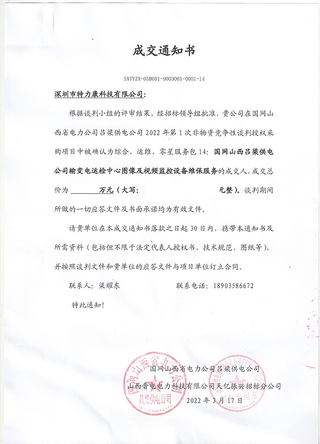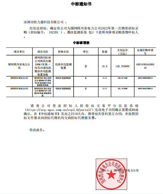特力康中標國網(wǎng)黑龍江送變電工程公司的2024年度第18次物資類競爭性談判采購項目——慶陽驅鳥器物資框 特力康中標國網(wǎng)甘肅省電力公司省管產(chǎn)業(yè)單位2024年第五次物資競爭性談判授權采購項目 中標喜訊:深圳市特力康科技有限公司成功入圍許繼集團綜合能源公司輸電線路視頻在線監(jiān)測裝置模塊集采項目 中標喜訊:特力康成功中標國網(wǎng)重慶市電力公司渝中一片區(qū)項目 特力康成功中標國網(wǎng)天津市電力公司2024年第二次?物?資招標項目 特力康中標國網(wǎng)安徽省電力有限公司蕪湖供電公司2024年3月非物質采購項目 內(nèi)蒙電網(wǎng)裝上 “舞動監(jiān)測眼”:特力康輸電線路防舞動監(jiān)測系統(tǒng)守護線路安全 浙江電力裝上“氣象哨兵”:特力康裝置守護電網(wǎng)應對臺風暴雨 蜀道巡線不用“爬”:特力康視頻在線監(jiān)測裝置守護四川輸電鐵塔 風雪中的 “防冰哨兵”:內(nèi)蒙古電力用特力康監(jiān)測系統(tǒng)筑牢覆冰防線 雙軸感知護塔穩(wěn):山西電力用特力康裝置破解采空區(qū)傾斜難題 江西電力裝上 “智能防鳥衛(wèi)士”—— 特力康綜合激光驅鳥器破解湖區(qū)變電站鳥害難題 破解巡檢難題:貴州電力用特力康 AI 微拍裝置,精準捕捉線路隱性隱患 精準捕捉 “微氣象”:浙江電力用特力康預警系統(tǒng)筑牢電網(wǎng)氣候防線 守護 “電力咽喉”:湖南電力投用百套特力康三跨 4G 監(jiān)控球,筑牢安全防線 貴州電力裝特力康電網(wǎng)架空線路覆冰監(jiān)測系統(tǒng),精準防冰保電網(wǎng)過冬? 寧夏配電線路安裝了我司防外破電子化智能警示牌