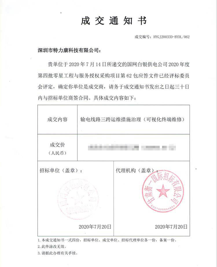 • 特力康中標(biāo)國網(wǎng)黑龍江送變電工程公司的2024年度第18次物資類競爭性談判采購項(xiàng)目——慶陽驅(qū)鳥器物資框 特力康中標(biāo)國網(wǎng)甘肅省電力公司省管產(chǎn)業(yè)單位2024年第五次物資競爭性談判授權(quán)采購項(xiàng)目 中標(biāo)喜訊:深圳市特力康科技有限公司成功入圍許繼集團(tuán)綜合能源公司輸電線路視頻在線監(jiān)測(cè)裝置模塊集采項(xiàng)目 中標(biāo)喜訊:特力康成功中標(biāo)國網(wǎng)重慶市電力公司渝中一片區(qū)項(xiàng)目 特力康成功中標(biāo)國網(wǎng)天津市電力公司2024年第二次?物?資招標(biāo)項(xiàng)目 特力康中標(biāo)國網(wǎng)安徽省電力有限公司蕪湖供電公司2024年3月非物質(zhì)采購項(xiàng)目 內(nèi)蒙電網(wǎng)裝上 “舞動(dòng)監(jiān)測(cè)眼”:特力康輸電線路防舞動(dòng)監(jiān)測(cè)系統(tǒng)守護(hù)線路安全 浙江電力裝上“氣象哨兵”:特力康裝置守護(hù)電網(wǎng)應(yīng)對(duì)臺(tái)風(fēng)暴雨 蜀道巡線不用“爬”:特力康視頻在線監(jiān)測(cè)裝置守護(hù)四川輸電鐵塔 風(fēng)雪中的 “防冰哨兵”:內(nèi)蒙古電力用特力康監(jiān)測(cè)系統(tǒng)筑牢覆冰防線 雙軸感知護(hù)塔穩(wěn):山西電力用特力康裝置破解采空區(qū)傾斜難題 江西電力裝上 “智能防鳥衛(wèi)士”—— 特力康綜合激光驅(qū)鳥器破解湖區(qū)變電站鳥害難題 破解巡檢難題:貴州電力用特力康 AI 微拍裝置,精準(zhǔn)捕捉線路隱性隱患 精準(zhǔn)捕捉 “微氣象”:浙江電力用特力康預(yù)警系統(tǒng)筑牢電網(wǎng)氣候防線 守護(hù) “電力咽喉”:湖南電力投用百套特力康三跨 4G 監(jiān)控球,筑牢安全防線 貴州電力裝特力康電網(wǎng)架空線路覆冰監(jiān)測(cè)系統(tǒng),精準(zhǔn)防冰保電網(wǎng)過冬? 寧夏配電線路安裝了我司防外破電子化智能警示牌