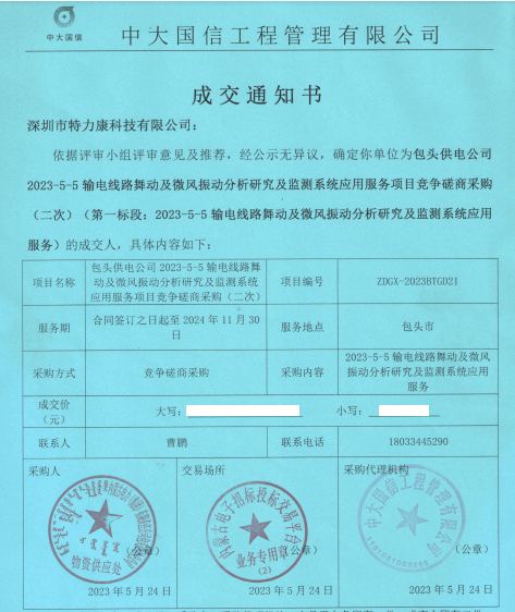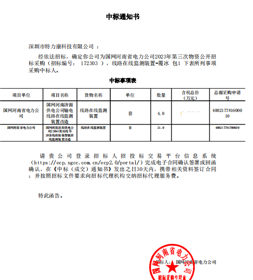 • 特力康中標(biāo)國網(wǎng)黑龍江送變電工程公司的2024年度第18次物資類競(jìng)爭(zhēng)性談判采購項(xiàng)目——慶陽驅(qū)鳥器物資框 特力康中標(biāo)國網(wǎng)甘肅省電力公司省管產(chǎn)業(yè)單位2024年第五次物資競(jìng)爭(zhēng)性談判授權(quán)采購項(xiàng)目 中標(biāo)喜訊:深圳市特力康科技有限公司成功入圍許繼集團(tuán)綜合能源公司輸電線路視頻在線監(jiān)測(cè)裝置模塊集采項(xiàng)目 中標(biāo)喜訊:特力康成功中標(biāo)國網(wǎng)重慶市電力公司渝中一片區(qū)項(xiàng)目 特力康成功中標(biāo)國網(wǎng)天津市電力公司2024年第二次?物?資招標(biāo)項(xiàng)目 特力康中標(biāo)國網(wǎng)安徽省電力有限公司蕪湖供電公司2024年3月非物質(zhì)采購項(xiàng)目 內(nèi)蒙電網(wǎng)裝上 “舞動(dòng)監(jiān)測(cè)眼”:特力康輸電線路防舞動(dòng)監(jiān)測(cè)系統(tǒng)守護(hù)線路安全 浙江電力裝上“氣象哨兵”:特力康裝置守護(hù)電網(wǎng)應(yīng)對(duì)臺(tái)風(fēng)暴雨 蜀道巡線不用“爬”:特力康視頻在線監(jiān)測(cè)裝置守護(hù)四川輸電鐵塔 風(fēng)雪中的 “防冰哨兵”:內(nèi)蒙古電力用特力康監(jiān)測(cè)系統(tǒng)筑牢覆冰防線 雙軸感知護(hù)塔穩(wěn):山西電力用特力康裝置破解采空區(qū)傾斜難題 江西電力裝上 “智能防鳥衛(wèi)士”—— 特力康綜合激光驅(qū)鳥器破解湖區(qū)變電站鳥害難題 破解巡檢難題:貴州電力用特力康 AI 微拍裝置,精準(zhǔn)捕捉線路隱性隱患 精準(zhǔn)捕捉 “微氣象”:浙江電力用特力康預(yù)警系統(tǒng)筑牢電網(wǎng)氣候防線 守護(hù) “電力咽喉”:湖南電力投用百套特力康三跨 4G 監(jiān)控球,筑牢安全防線 貴州電力裝特力康電網(wǎng)架空線路覆冰監(jiān)測(cè)系統(tǒng),精準(zhǔn)防冰保電網(wǎng)過冬? 寧夏配電線路安裝了我司防外破電子化智能警示牌