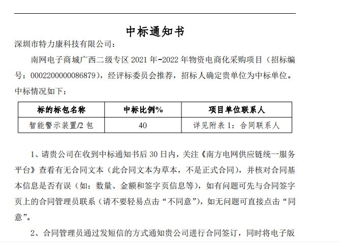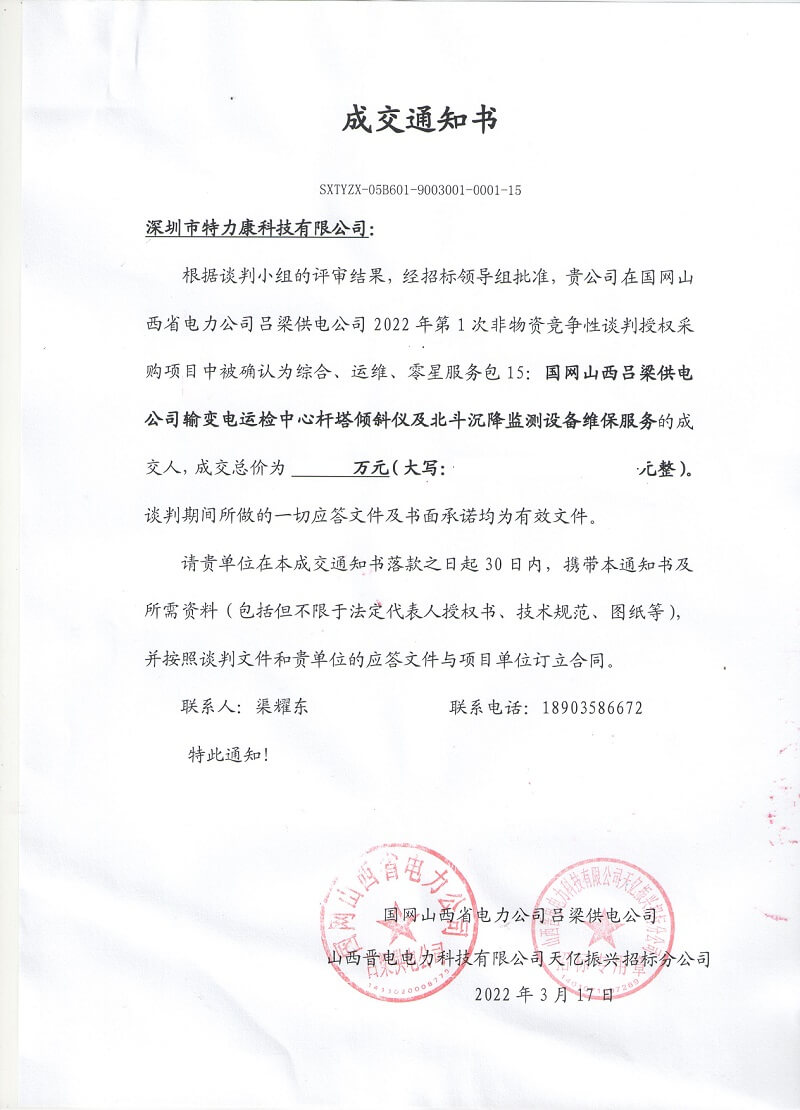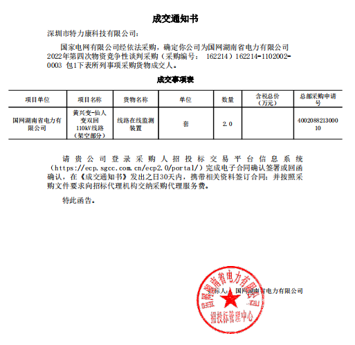 特力康中標國網(wǎng)黑龍江送變電工程公司的2024年度第18次物資類競爭性談判采購項目——慶陽驅鳥器物資框 特力康中標國網(wǎng)甘肅省電力公司省管產(chǎn)業(yè)單位2024年第五次物資競爭性談判授權采購項目 中標喜訊:深圳市特力康科技有限公司成功入圍許繼集團綜合能源公司輸電線路視頻在線監(jiān)測裝置模塊集采項目 中標喜訊:特力康成功中標國網(wǎng)重慶市電力公司渝中一片區(qū)項目 特力康成功中標國網(wǎng)天津市電力公司2024年第二次?物?資招標項目 特力康中標國網(wǎng)安徽省電力有限公司蕪湖供電公司2024年3月非物質采購項目 內(nèi)蒙電網(wǎng)裝上 “舞動監(jiān)測眼”:特力康輸電線路防舞動監(jiān)測系統(tǒng)守護線路安全 浙江電力裝上“氣象哨兵”:特力康裝置守護電網(wǎng)應對臺風暴雨 蜀道巡線不用“爬”:特力康視頻在線監(jiān)測裝置守護四川輸電鐵塔 風雪中的 “防冰哨兵”:內(nèi)蒙古電力用特力康監(jiān)測系統(tǒng)筑牢覆冰防線 雙軸感知護塔穩(wěn):山西電力用特力康裝置破解采空區(qū)傾斜難題 江西電力裝上 “智能防鳥衛(wèi)士”—— 特力康綜合激光驅鳥器破解湖區(qū)變電站鳥害難題 破解巡檢難題:貴州電力用特力康 AI 微拍裝置,精準捕捉線路隱性隱患 精準捕捉 “微氣象”:浙江電力用特力康預警系統(tǒng)筑牢電網(wǎng)氣候防線 守護 “電力咽喉”:湖南電力投用百套特力康三跨 4G 監(jiān)控球,筑牢安全防線 貴州電力裝特力康電網(wǎng)架空線路覆冰監(jiān)測系統(tǒng),精準防冰保電網(wǎng)過冬? 寧夏配電線路安裝了我司防外破電子化智能警示牌