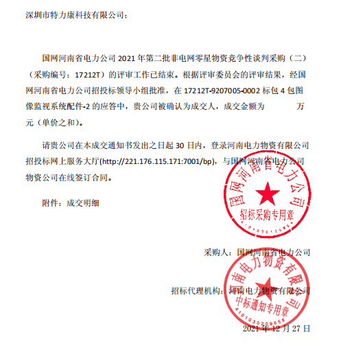 • 特力康中標(biāo)國網(wǎng)黑龍江送變電工程公司的2024年度第18次物資類競爭性談判采購項目——慶陽驅(qū)鳥器物資框 特力康中標(biāo)國網(wǎng)甘肅省電力公司省管產(chǎn)業(yè)單位2024年第五次物資競爭性談判授權(quán)采購項目 中標(biāo)喜訊:深圳市特力康科技有限公司成功入圍許繼集團(tuán)綜合能源公司輸電線路視頻在線監(jiān)測裝置模塊集采項目 中標(biāo)喜訊:特力康成功中標(biāo)國網(wǎng)重慶市電力公司渝中一片區(qū)項目 特力康成功中標(biāo)國網(wǎng)天津市電力公司2024年第二次?物?資招標(biāo)項目 特力康中標(biāo)國網(wǎng)安徽省電力有限公司蕪湖供電公司2024年3月非物質(zhì)采購項目 內(nèi)蒙電網(wǎng)裝上 “舞動監(jiān)測眼”:特力康輸電線路防舞動監(jiān)測系統(tǒng)守護(hù)線路安全 浙江電力裝上“氣象哨兵”:特力康裝置守護(hù)電網(wǎng)應(yīng)對臺風(fēng)暴雨 蜀道巡線不用“爬”:特力康視頻在線監(jiān)測裝置守護(hù)四川輸電鐵塔 風(fēng)雪中的 “防冰哨兵”:內(nèi)蒙古電力用特力康監(jiān)測系統(tǒng)筑牢覆冰防線 雙軸感知護(hù)塔穩(wěn):山西電力用特力康裝置破解采空區(qū)傾斜難題 江西電力裝上 “智能防鳥衛(wèi)士”—— 特力康綜合激光驅(qū)鳥器破解湖區(qū)變電站鳥害難題 破解巡檢難題:貴州電力用特力康 AI 微拍裝置,精準(zhǔn)捕捉線路隱性隱患 精準(zhǔn)捕捉 “微氣象”:浙江電力用特力康預(yù)警系統(tǒng)筑牢電網(wǎng)氣候防線 守護(hù) “電力咽喉”:湖南電力投用百套特力康三跨 4G 監(jiān)控球,筑牢安全防線 貴州電力裝特力康電網(wǎng)架空線路覆冰監(jiān)測系統(tǒng),精準(zhǔn)防冰保電網(wǎng)過冬? 寧夏配電線路安裝了我司防外破電子化智能警示牌