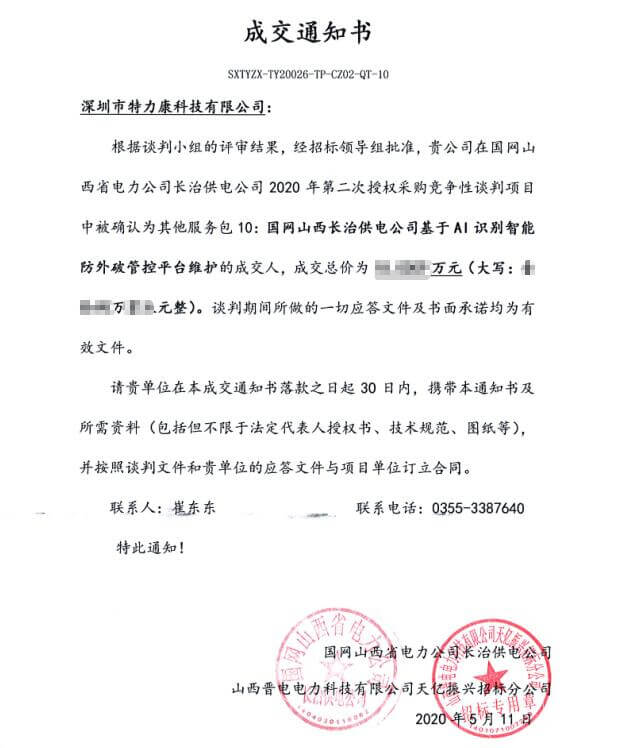 • 特力康中標(biāo)國網(wǎng)黑龍江送變電工程公司的2024年度第18次物資類競爭性談判采購項(xiàng)目——慶陽驅(qū)鳥器物資框 特力康中標(biāo)國網(wǎng)甘肅省電力公司省管產(chǎn)業(yè)單位2024年第五次物資競爭性談判授權(quán)采購項(xiàng)目 中標(biāo)喜訊:深圳市特力康科技有限公司成功入圍許繼集團(tuán)綜合能源公司輸電線路視頻在線監(jiān)測(cè)裝置模塊集采項(xiàng)目 中標(biāo)喜訊:特力康成功中標(biāo)國網(wǎng)重慶市電力公司渝中一片區(qū)項(xiàng)目 特力康成功中標(biāo)國網(wǎng)天津市電力公司2024年第二次?物?資招標(biāo)項(xiàng)目 特力康中標(biāo)國網(wǎng)安徽省電力有限公司蕪湖供電公司2024年3月非物質(zhì)采購項(xiàng)目 內(nèi)蒙電網(wǎng)裝上 “舞動(dòng)監(jiān)測(cè)眼”:特力康輸電線路防舞動(dòng)監(jiān)測(cè)系統(tǒng)守護(hù)線路安全 浙江電力裝上“氣象哨兵”:特力康裝置守護(hù)電網(wǎng)應(yīng)對(duì)臺(tái)風(fēng)暴雨 蜀道巡線不用“爬”:特力康視頻在線監(jiān)測(cè)裝置守護(hù)四川輸電鐵塔 風(fēng)雪中的 “防冰哨兵”:內(nèi)蒙古電力用特力康監(jiān)測(cè)系統(tǒng)筑牢覆冰防線 雙軸感知護(hù)塔穩(wěn):山西電力用特力康裝置破解采空區(qū)傾斜難題 江西電力裝上 “智能防鳥衛(wèi)士”—— 特力康綜合激光驅(qū)鳥器破解湖區(qū)變電站鳥害難題 破解巡檢難題:貴州電力用特力康 AI 微拍裝置,精準(zhǔn)捕捉線路隱性隱患 精準(zhǔn)捕捉 “微氣象”:浙江電力用特力康預(yù)警系統(tǒng)筑牢電網(wǎng)氣候防線 守護(hù) “電力咽喉”:湖南電力投用百套特力康三跨 4G 監(jiān)控球,筑牢安全防線 貴州電力裝特力康電網(wǎng)架空線路覆冰監(jiān)測(cè)系統(tǒng),精準(zhǔn)防冰保電網(wǎng)過冬? 寧夏配電線路安裝了我司防外破電子化智能警示牌