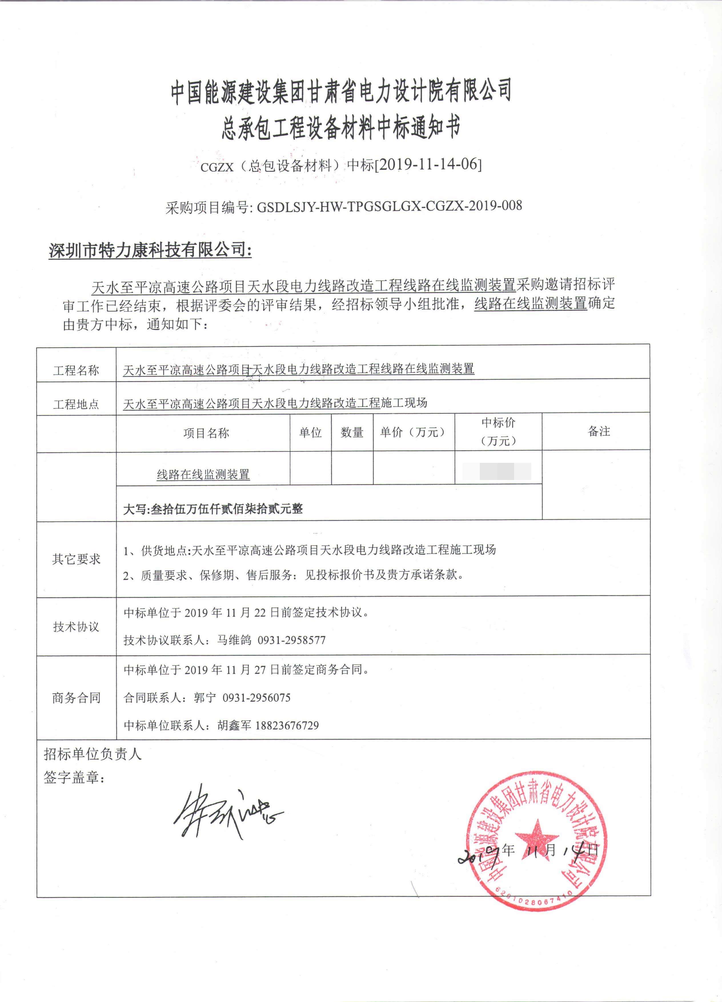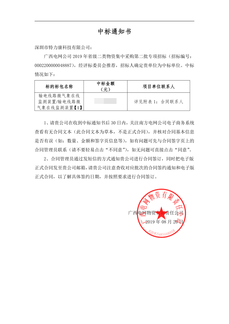 • 特力康中標(biāo)國(guó)網(wǎng)黑龍江送變電工程公司的2024年度第18次物資類競(jìng)爭(zhēng)性談判采購(gòu)項(xiàng)目——慶陽(yáng)驅(qū)鳥器物資框 特力康中標(biāo)國(guó)網(wǎng)甘肅省電力公司省管產(chǎn)業(yè)單位2024年第五次物資競(jìng)爭(zhēng)性談判授權(quán)采購(gòu)項(xiàng)目 中標(biāo)喜訊:深圳市特力康科技有限公司成功入圍許繼集團(tuán)綜合能源公司輸電線路視頻在線監(jiān)測(cè)裝置模塊集采項(xiàng)目 中標(biāo)喜訊:特力康成功中標(biāo)國(guó)網(wǎng)重慶市電力公司渝中一片區(qū)項(xiàng)目 特力康成功中標(biāo)國(guó)網(wǎng)天津市電力公司2024年第二次?物?資招標(biāo)項(xiàng)目 特力康中標(biāo)國(guó)網(wǎng)安徽省電力有限公司蕪湖供電公司2024年3月非物質(zhì)采購(gòu)項(xiàng)目 內(nèi)蒙電網(wǎng)裝上 “舞動(dòng)監(jiān)測(cè)眼”:特力康輸電線路防舞動(dòng)監(jiān)測(cè)系統(tǒng)守護(hù)線路安全 浙江電力裝上“氣象哨兵”:特力康裝置守護(hù)電網(wǎng)應(yīng)對(duì)臺(tái)風(fēng)暴雨 蜀道巡線不用“爬”:特力康視頻在線監(jiān)測(cè)裝置守護(hù)四川輸電鐵塔 風(fēng)雪中的 “防冰哨兵”:內(nèi)蒙古電力用特力康監(jiān)測(cè)系統(tǒng)筑牢覆冰防線 雙軸感知護(hù)塔穩(wěn):山西電力用特力康裝置破解采空區(qū)傾斜難題 江西電力裝上 “智能防鳥衛(wèi)士”—— 特力康綜合激光驅(qū)鳥器破解湖區(qū)變電站鳥害難題 破解巡檢難題:貴州電力用特力康 AI 微拍裝置,精準(zhǔn)捕捉線路隱性隱患 精準(zhǔn)捕捉 “微氣象”:浙江電力用特力康預(yù)警系統(tǒng)筑牢電網(wǎng)氣候防線 守護(hù) “電力咽喉”:湖南電力投用百套特力康三跨 4G 監(jiān)控球,筑牢安全防線 貴州電力裝特力康電網(wǎng)架空線路覆冰監(jiān)測(cè)系統(tǒng),精準(zhǔn)防冰保電網(wǎng)過冬? 寧夏配電線路安裝了我司防外破電子化智能警示牌