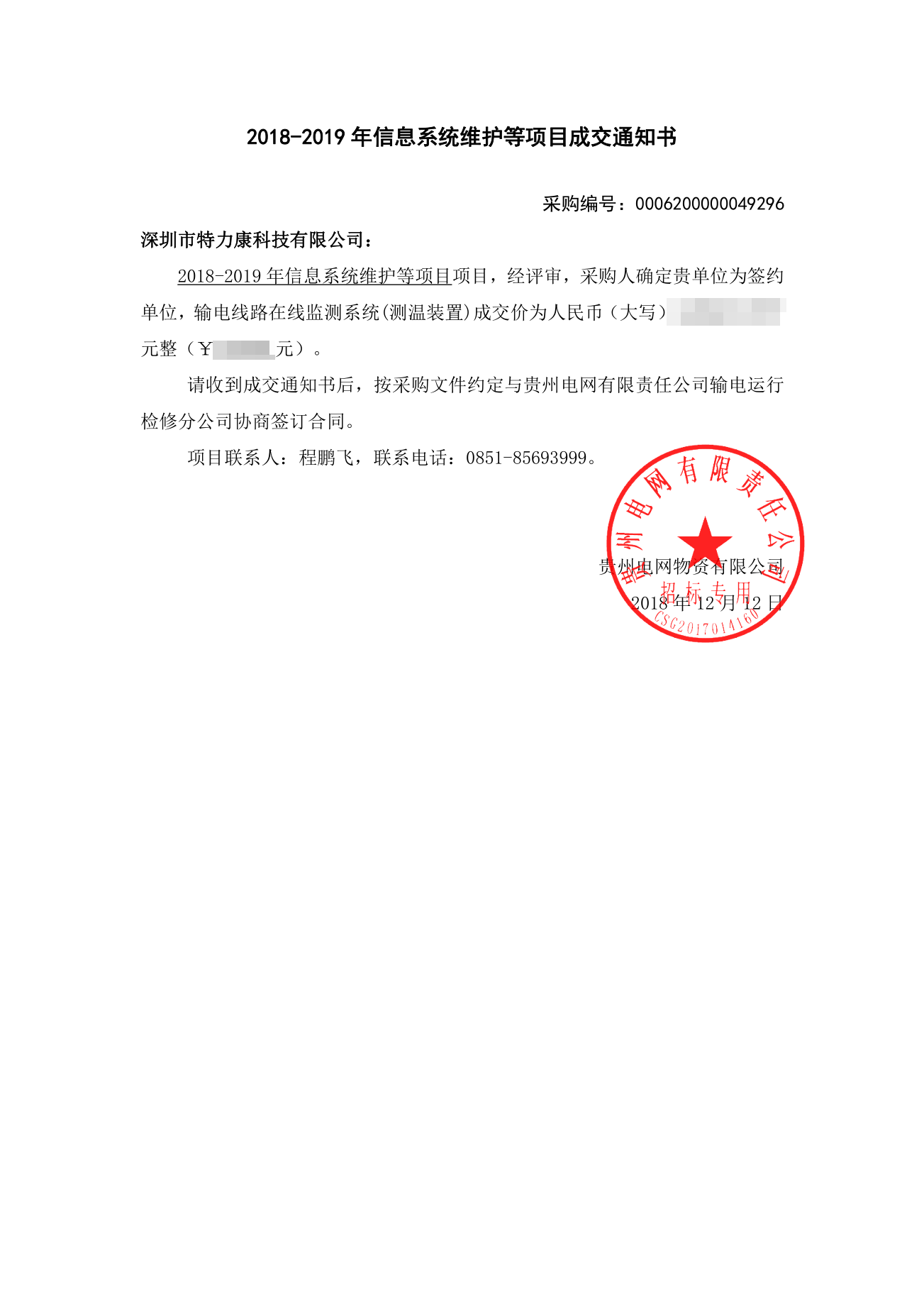 我司中標貴州省電力公司2018-2019信息系統(tǒng)維護項目